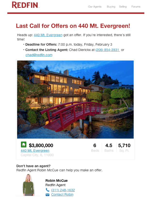 Redfin launched a new service called “Last Call,” which informs house hunters when a home is about to sell so they can make an offer on it right away.