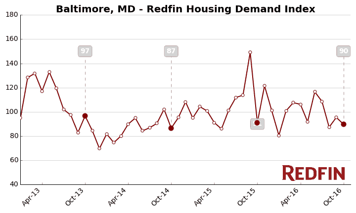 A level of 100 represents the historical average for the three-year period from January 2013 to December 2015, meaning that demand in October was at recent historical norms.