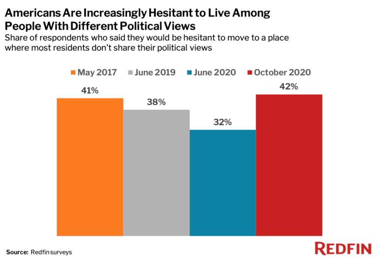 42% of Americans Are Hesitant to Move to a Place Where They’d Be in the Political Minority, Up From 32% in June
