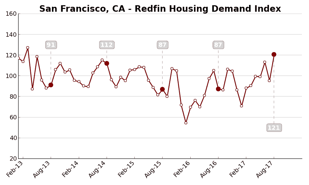 “High consumer confidence and low interest rates have powered homebuyer demand, but too-low inventory has constrained home sales all year,” said Redfin chief economist Nela Richardson. “The Federal Reserve is now setting the stage for a slow, steady increase in mortgage rates in October by beginning to sell its mortgage portfolio. Fall buyers are likely to face slightly higher financing costs in addition to strong price growth.”